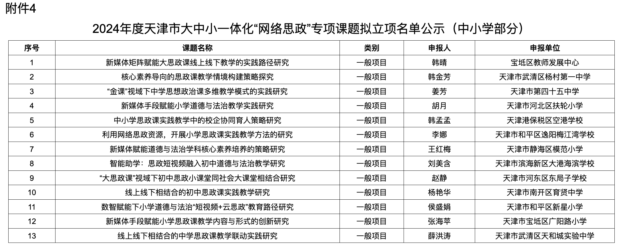 4.2024年度天津市大中小一体化“网络思政”专项课题拟立项名单公示(高校部分)
