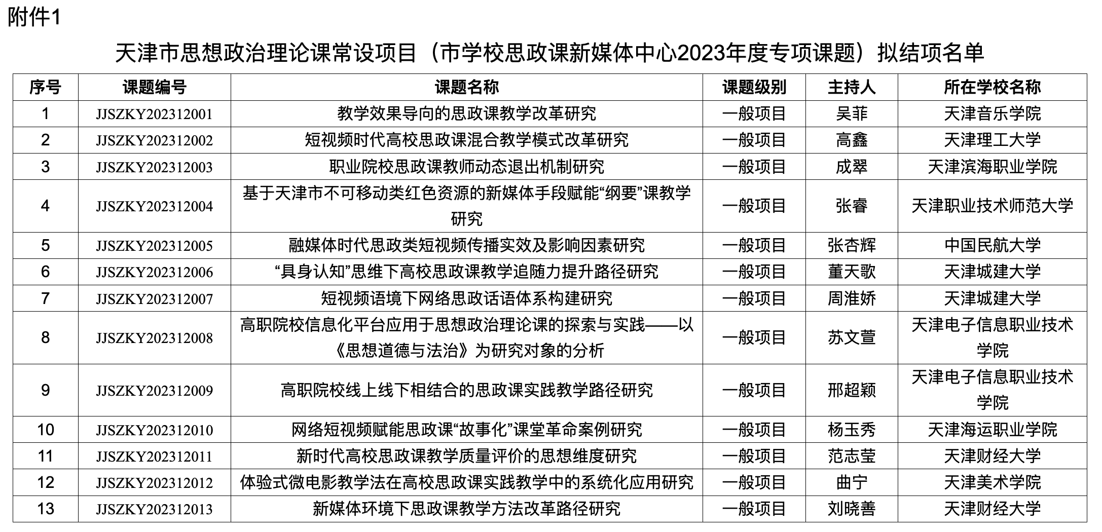 1.天津市思想政治理论课常设项目(市公司思政课新媒体中心2023年度专项课题)拟结项名单