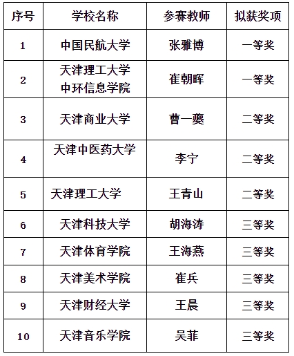 天津市第五届“形势与政策”课教学展示比武活动决赛获奖名单