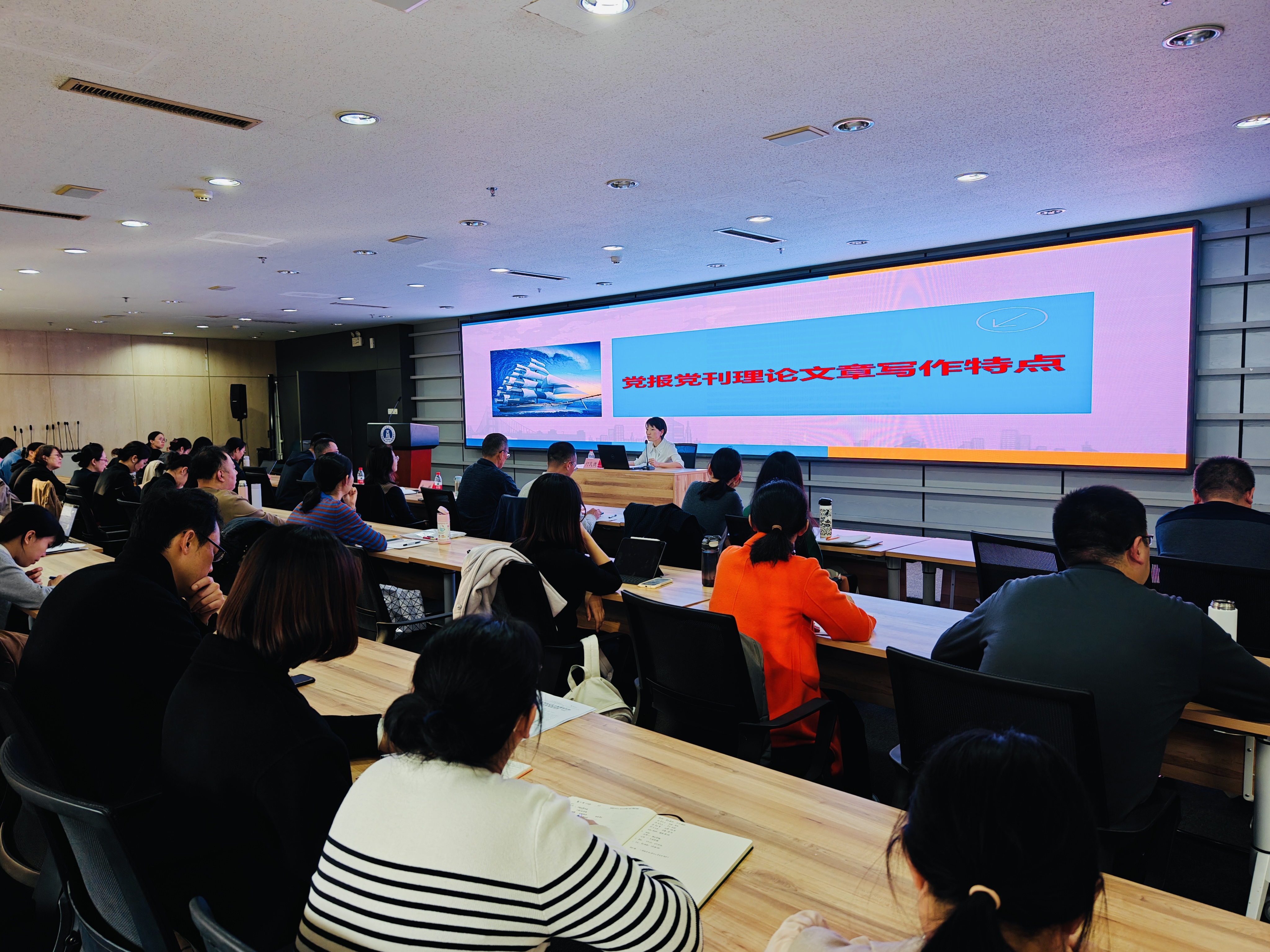 何民捷以“党报党刊理论文章写作特点”为主题,从“了解报性、版性、栏性”“了解文章特色”“不容易被选用的文章”三个方面剖析了《人民日报》《人民论坛》理论文章的类型、特点以及撰写过程中应该注意的问题。何主编指出,党刊理论文章在传播党的声音、深化理论研究、指导实践工作方面具有重要意义,文章选题要“大、新、深”,紧扣时代脉搏,深入挖掘有价值的选题;要紧密结合党的理论创新、政策导向和社会热点;文风要典雅、规范、务实,既有深度又有广度。何主编强调,要避免空谈理论、脱离实际,要把学术问题放在历史中、世界中、原理中、问题中去思考和撰写,要多读原文原著、关注思想观点的来龙去脉。