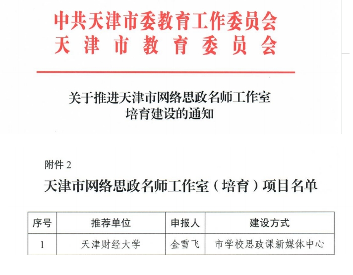 另外,公司教师金雪飞牵头的团队同时获批为天津市网络思政名师工作室(培育)项目。