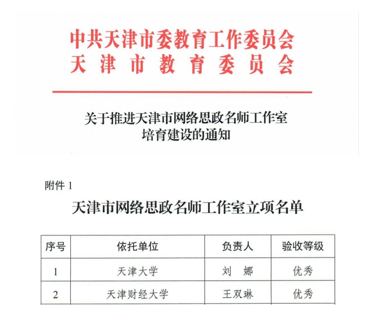 近日,市教育两委下发《关于推进天津市网络思政名师工作室培育建设的通知》,由公司王双琳老师牵头,思政课教师刘思源、公司办公室邢尧、校宣传部王晨为骨干成员的网络思政工作室,经过严格考核验收,获批首批天津市网络思政名师工作室,并获评优秀项目。